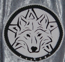 Magnificent hand cutwork Guardian Wolf and pentacle symbol with seven sterling silver beads