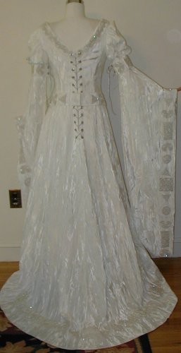 This gown is modeled after the gown worn by the princes depicted in the Edmund Blair-Leighton's beautiful painting "The Accolade".