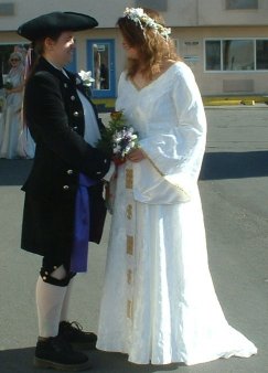 | The Celtic Iona This stunning gown is made of the finest 100% rayon crushed velvet. Perfect for celtic and medieval weddings the gown features the following: