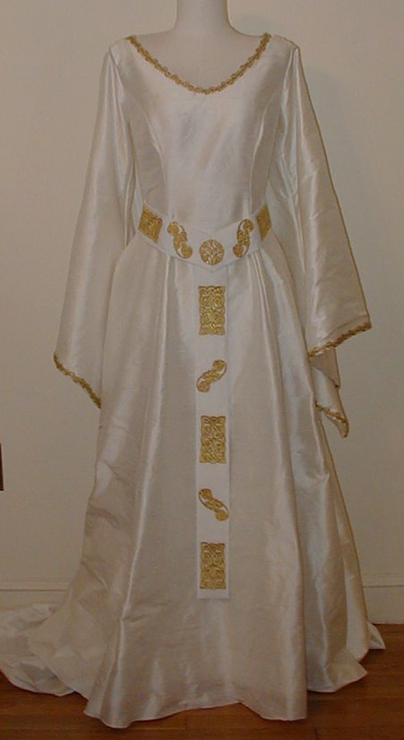 Watteau or Silk Wedding Cloak Gown with Celtic Medieval Embroidered Drop belt - $750